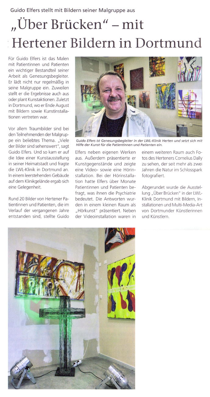 Ich habe dann Patientinnen aus Dortmund und Herten gefragt ob sie sich Vorstellen können mitzuwirken. Einige Patientinnen haben Traumbilder gemalt, oder haben mir die Frage beantwortet "Welche Bedeutung hat für Dich die Psychiatrie", die Antworten habe ich Aufgenommen und bei der Ausstellung abgespielt.