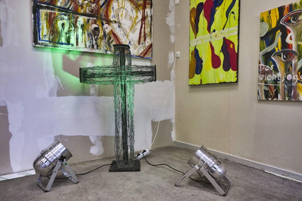 Natürlich habe ich auch Kunst von mir gezeigt, wie eine Stacheldraht Installation, Bilder, Klang-und Rauminstallationen. Während der Ausstellung kam die Idee eine Sendung zur Ausstellung im Bürgerfunk zu machen, einige Ehemalige Patientinnen wirkten mit und so ist der Bürgerfunk Lebenstiefe entstanden, den wir am 25.02.22 auf Radio91.2 gesendet haben!