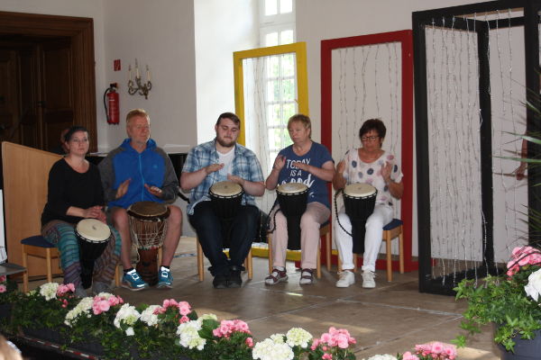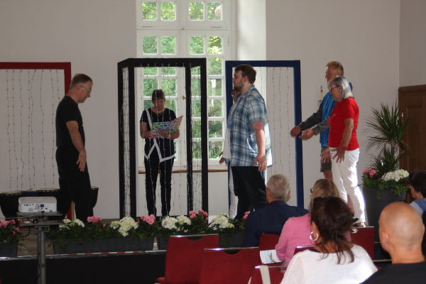 In der Performance befassen wir uns mit der Geschichte der Patientin, was sie in der Klinik erlebt und wie sie wieder befreit wird. Zu Beginn der Performance kommt ein Mitarbeiter der Technikabteilung auf die Bühne und zündet eine Kerze an. Die Geschichte startet damit, dass die Patientin freiwillig in die Klinik geht, der auf der Bühne symbolisiert wird durch einen mit Stacheldraht begrenzten Raum in Form eines komfortabel hergestellten Holzkastens. Die Geschichte geht damit weiter, dass sie die Trommelgruppe besucht, Qi-Gong macht und an der Wortfabrik teilnimmt. Dort schreibt sie den eingangs erwähnten Text. Dies wird alles auf der Bühne mit Hilfe des Holzkastens mit Stacheldraht nachgestellt. Schließlich wird die Patientin durch einen LWL-Mitarbeiter wieder aus dem Stacheldrahtraum befreit, sie geht auf die Bühne und ans Rednerpult, um ihren Text "Aufenthalt" vorzulesen. Danach legt sie sich auf eine Hängematte, um sich auszuruhen, und wird von der Gruppe "Singen für die Seele" mit Hilfe eines Schlafliedes in den Schlaf gesungen. Aus der Hängematte fallen Zettel herunter mit Schlagwörtern aus dem Text. Zum Schluss kommt noch mal ein Mitarbeiter der Technik auf die Bühne und pustet die Kerze wieder aus. Die Performance ist beendet.